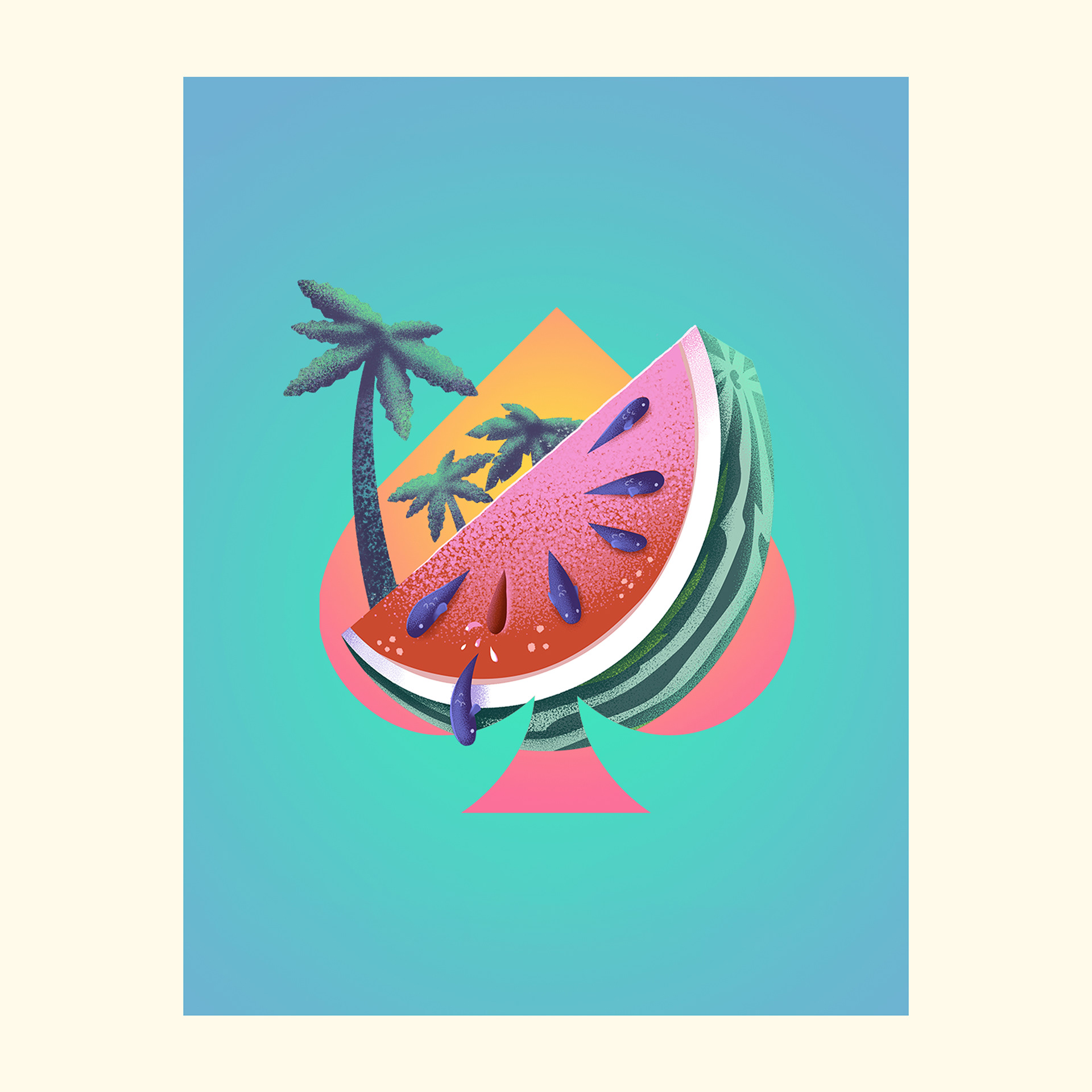 The "ace" of spades element is maintained and used as an anchor between the brand and the illustrations.